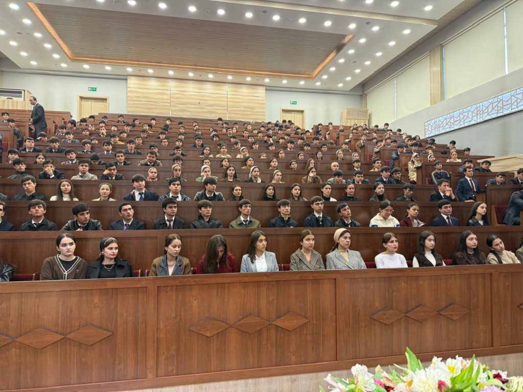 Бо ибтикори роҳбарияти Донишгоҳи миллии Тоҷикистон ҷиҳати беҳтар намудани донишҳои ҳуқуқиву сиёсии ҷавонон – донишҷӯён пайваста чорабиниҳои муҳимми тарбиявӣ гузаронида мешавад. Бо ин мақсад имрӯз (04.11.2025) вохӯрии навбатии намояндаи сохтори ҳифзи ҳуқуқ, сарпарасти Донишгоҳ аз КДАМ бо донишҷӯёни факултети баҳисобгирӣ ва иқтисоди рақамии Донишгоҳ баргузор гардид. Дар вохӯрии мазкур, мавзуҳои муҳим, аз қабили ватандӯстӣ, ҳифзи арзишҳои миллӣ ва нақши тарбияи ҳуқуқии ҷавонон дар таҳкими давлатдории миллӣ мавриди баррасӣ қарор гирифт.